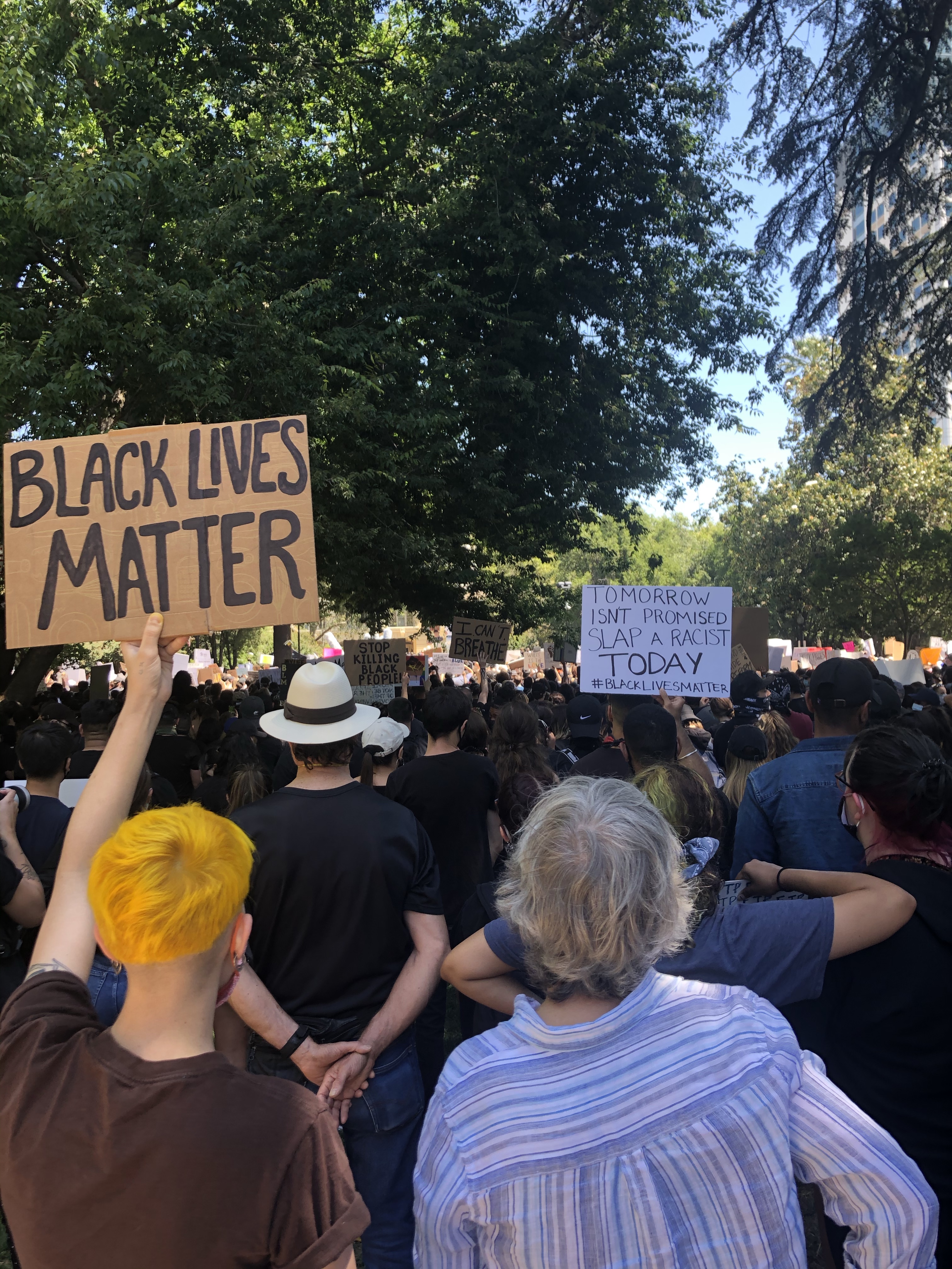 Sacramento flooded the Downtown area and Cesar Chavez Park with a loud and firm message that injustice is all of our problems. I was reassured by the diversity and many signs that people are able to see with their own eyes the injustice that Black men and women experience everyday. It was heart-warming AND thought-provoking. Now what? What are the next steps? Aside from peaceful protest, what have we learned?